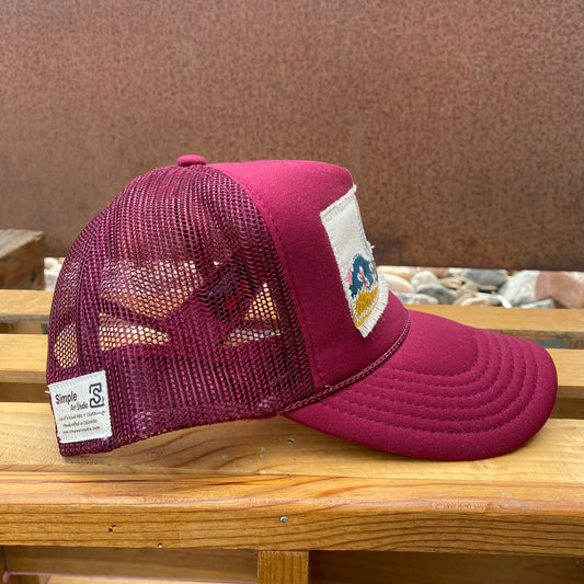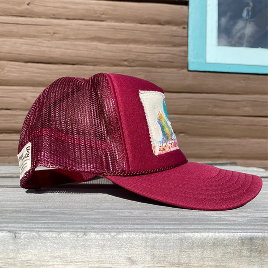 Burgundy Trucker Hat - Mountain Scene