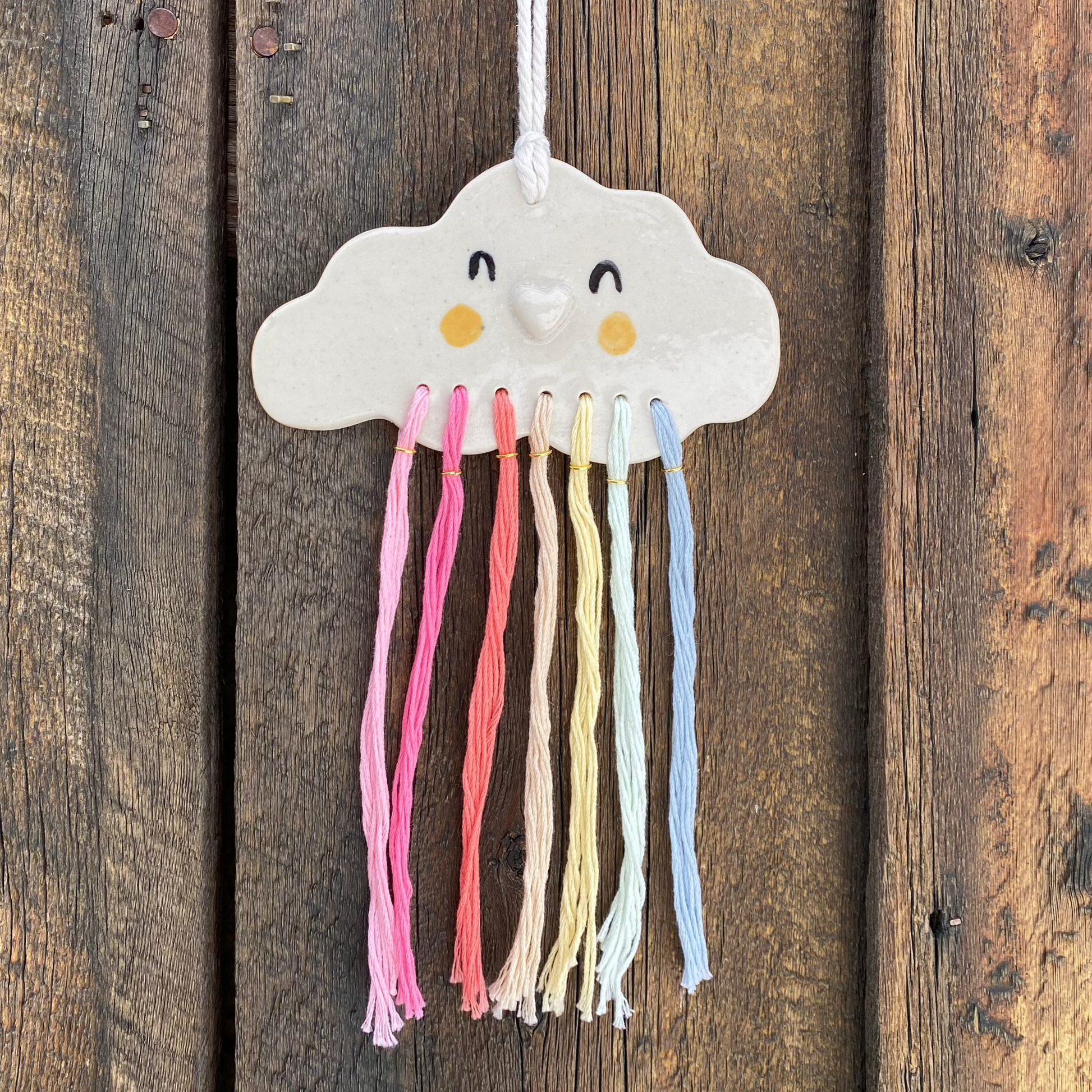 Bring the magic of Hearted Cloud, a one-of-a-kind addition to any nursery. This handcrafted ceramic piece is part of a limited batch, made with love and transformed into a colorful and aesthetic wall hanging that will add a touch of whimsy and dreaminess to any room.